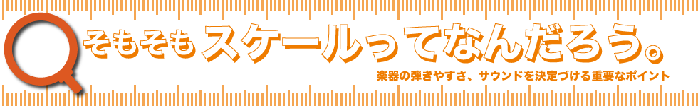 ここでのスケールとは弦長(scale length)のことを指します。これはナットからブリッジまでの長さのこと。ギターやベースだけでなく、ウクレレ、バイオリン、チェロなど様々な大きさの弦楽器がありますが、それぞれの楽器にスケールが設定されています。