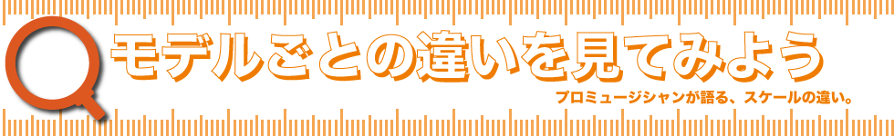1インチ=2.54cmという一見わずかな差ですが、演奏性やサウンド面での様々な違いが生まれ、弾く人それぞれに最適なサイズ感があります。