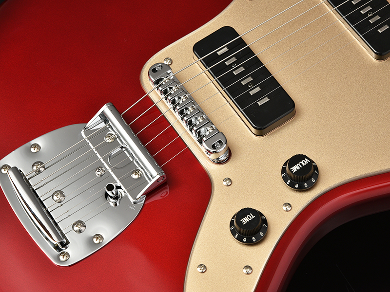 加えてバズストップバーを標準装備しています。このパーツはオリジナルJMスタイルのテンションの緩さ、弦落ちトラブルを解消するために生まれたコンポーネントパーツですが、予めこれを搭載することでテンション感の調整、サスティーンの向上など、伝統的なJMスタイルのギターの煩雑な部分を一挙に解決し、演奏性が格段に向上しています。
