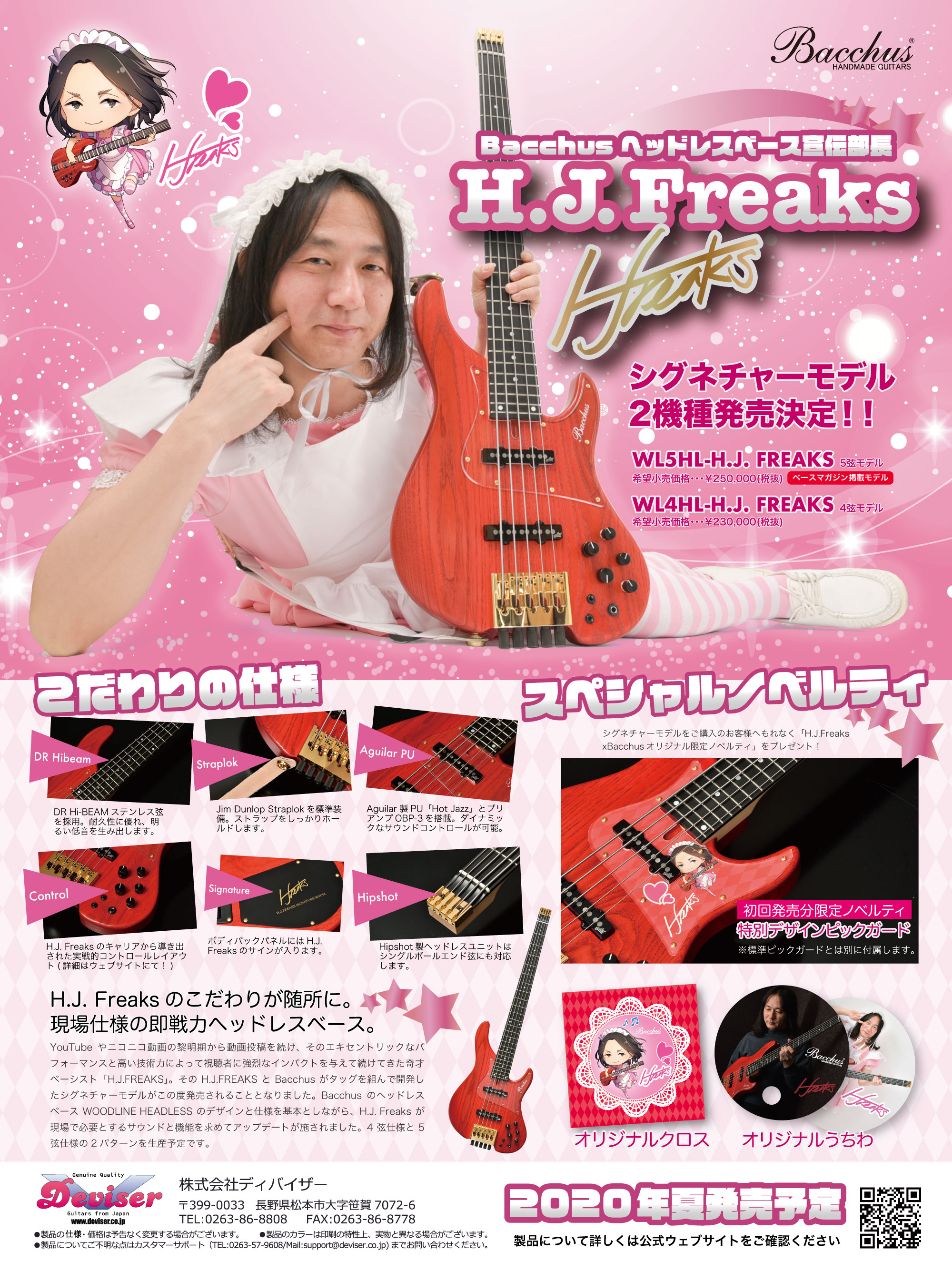 氏のシグネチャーモデルはBacchus CUSTOM Seriesより今年の夏に発売予定となっております。