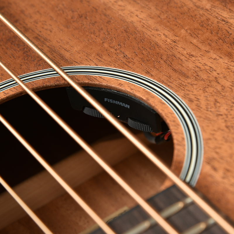 アンダーサドルタイプのピックアップを採用しており、アコースティックなサウンドを損なわずにアンプから出力できます。