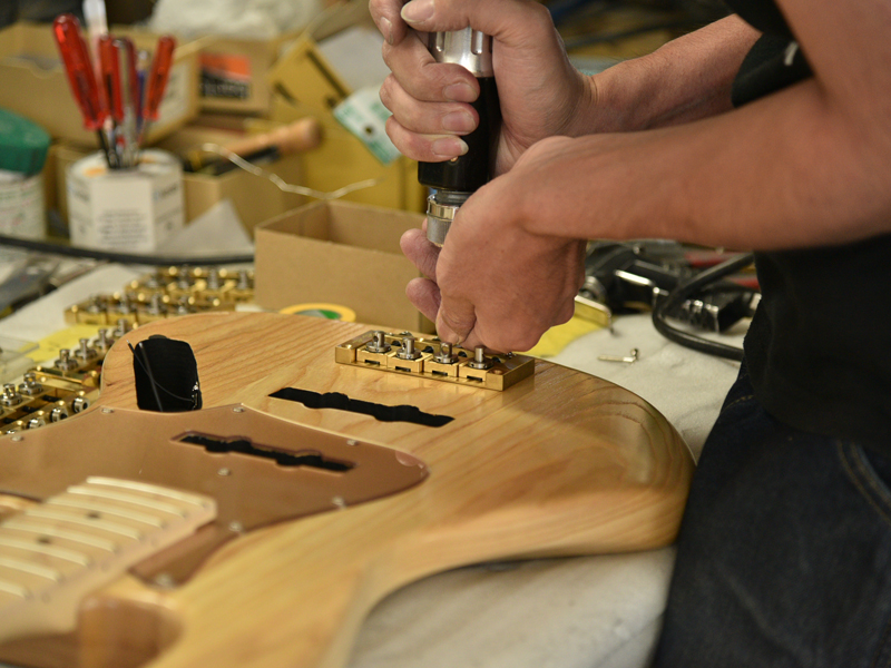 「まず、RayRossブリッジは通常のブリッジと取り付け位置が違うため、取り付けの際オクターブがずれてしまわないよう位置出しは慎重に行っています。