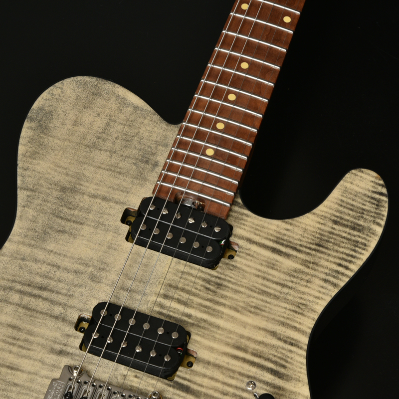 ネックにローステッドフレイムメイプルを採用することで、ハイエンドモデルの様な雰囲気を醸し出しています。ネックとしての剛性が高いためトラブルが少なく、また音の立ち上がりが良いカラッとしたビンテージギターのようなトーンを生み出します。(※フレイムメイプルの杢目には個体差があります)