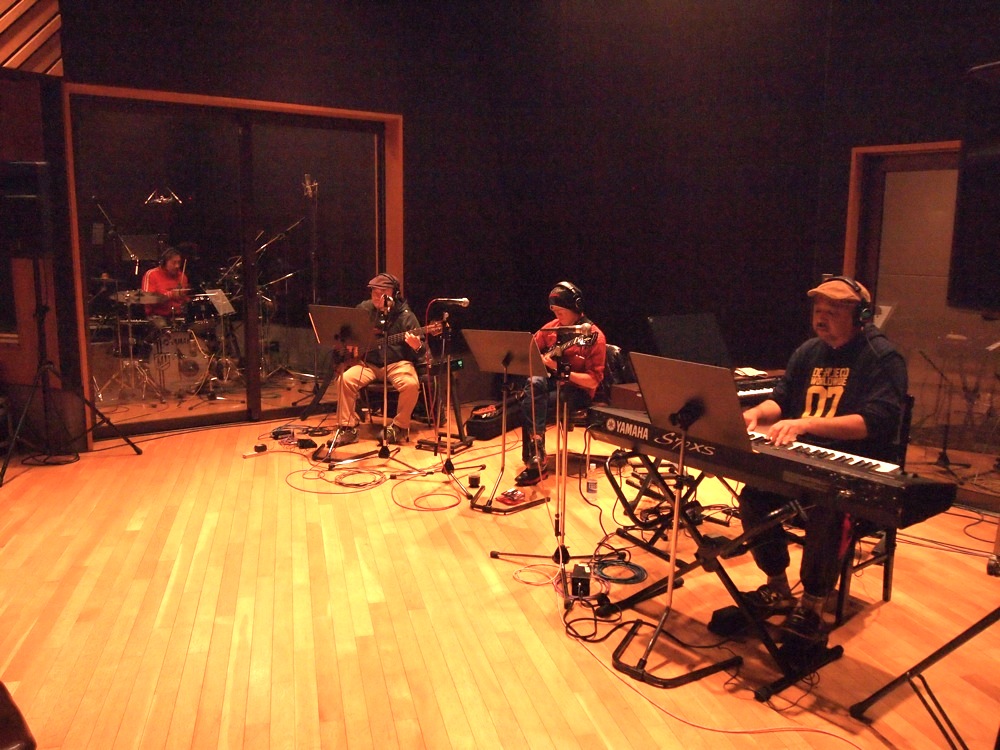 プレイバックを聞きながら納得の行かない点が有れば各パートをピンポイントで録り直します。一曲ずつ、演奏→アレンジ→プレイバックの確認→修正の繰り返しでレコーディングが進み、夜まで掛けてアルバムに収録予定の曲が録音されました。