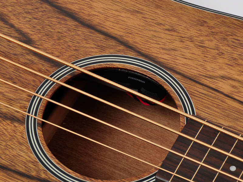 エレキベースからの持ち替えを考慮し、フィッシュマンのプリアンプを搭載。Sonitoneスタイルで、サウンドホールのすぐ裏にVolとToneコントロールがレイアウトされています。