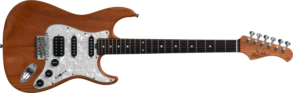 上位機種「Bacchus HANDMAGE Series G-STUDIO」を基本とし、オールマホガニー仕様で制作されたコストパフォーマンスモデル。ピックアップはSSHレイアウトで、コントロールにはブレンダーを採用し、コイルタップ機能を搭載しています。オールマホガニーのファットなサウンドで幅広い音作りが可能です。