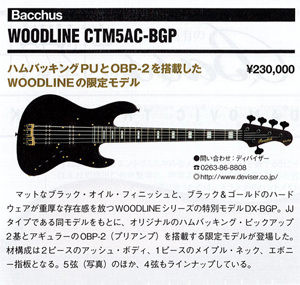 ベースマガジン2月号新製品紹介にBacchus Guitars WOODLINE CTM5AC-BGPが掲載。