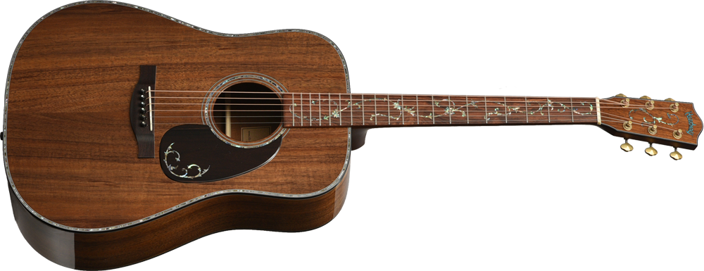 また、ヘッドからピックガードまでの装飾はアバロンのインレイが華やかに彩ります。指板はツリーオブライフのインレイが施され、ヘッドロゴはターコイズ素材を採用しています。