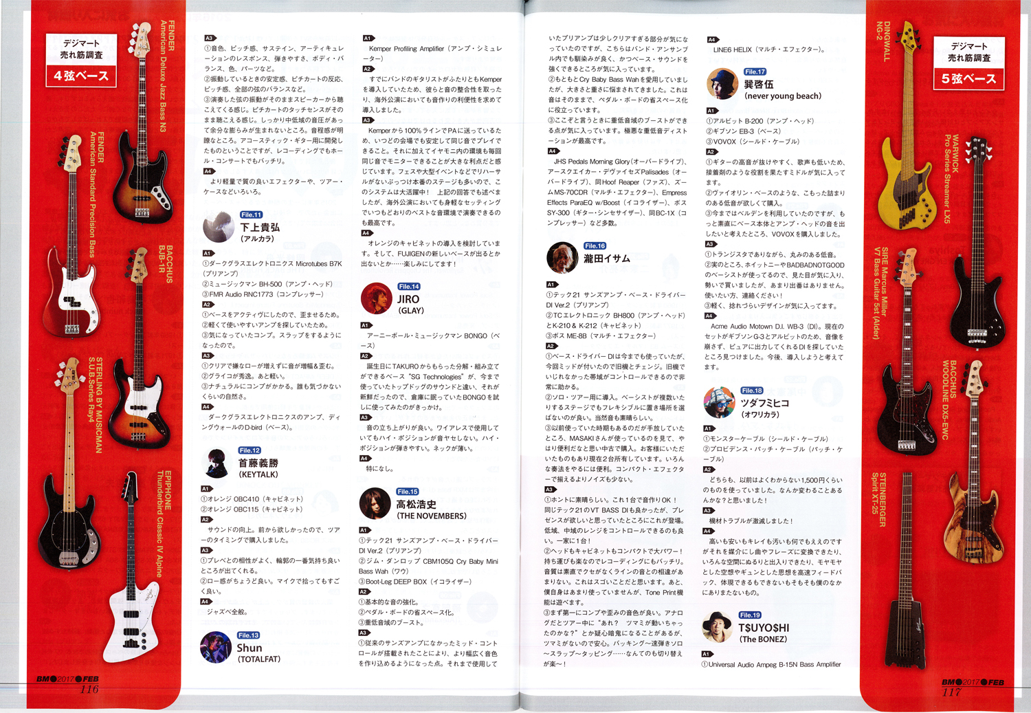 そして「プロ・ベーシストに聞いた!2016年に新導入したオススメ機材」ではデジマートでの2016年の売れ筋製品がカテゴリ別に掲載されています。
