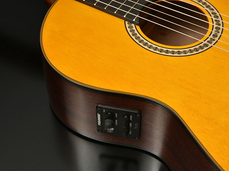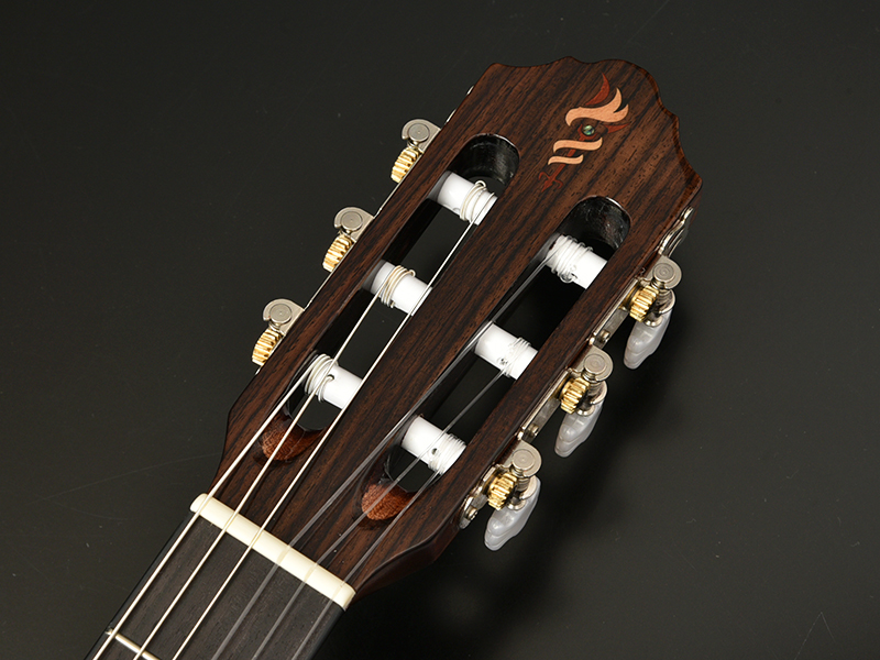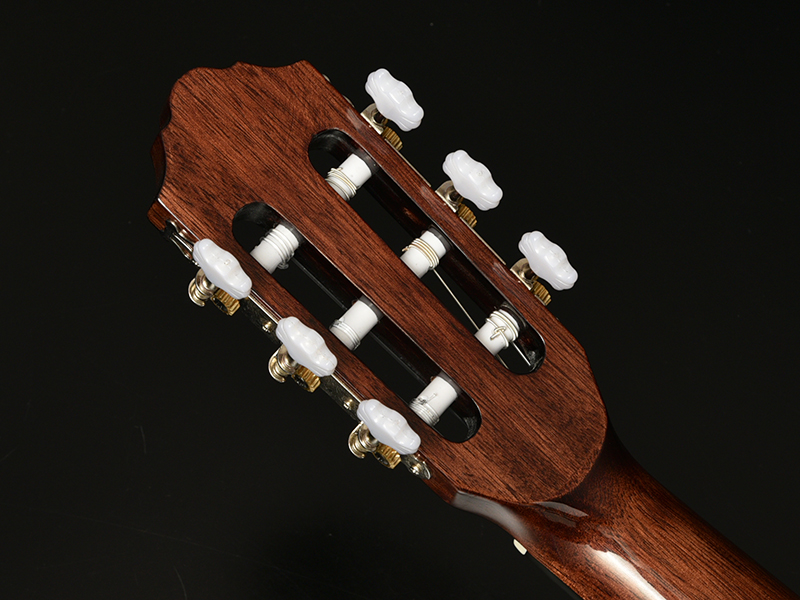 また、ナット位置で48mmの狭めのネック幅を採用し、弦高も弾きやすさを重視して低めに設定しています。普段アコースティックギターやエレキギターをメインで使用している方でも比較的握りやすく設計されており、ガットギターのサウンドを気軽にお試しいただけます。