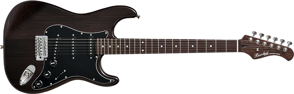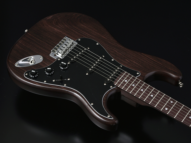 テックウッド(Tech Wood)とはギターやベースに使用されるポプラ材を何層にも重ね合わせ作り上げた合板材です。近年資源の減少により希少性を増すローズウッドの外観に近く、木目を楽しめるよう積層の仕方にも一工夫されています。ボディ内部をくり抜き、軽量化してあるため気軽に演奏をお楽しみいただけます。