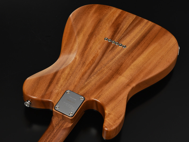 コア材やアカシア材を活かすナチュラルカラーで仕上げ、バインディングにはベッコウ柄を使用し高級感のある外観に仕上がりました。NA/OILカラーはボディバック・ネック裏共にナチュラルカラーとなり、NA-MATはボディバック・ネック裏共にブラウンカラーとなります。