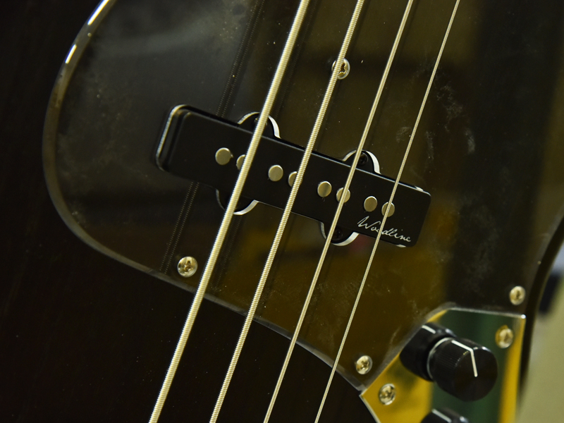 ピックアップのポールピース位置を見直し、弦とピックアップの位置関係を最適化。ピックアップカバーには「WOODLINE」のロゴが入っています。また、リアピックアップの位置をブリッジ寄りにレイアウトしています。