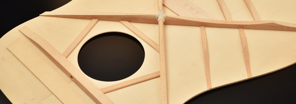 555モデルでは音質の向上を目的に、ブレイシング材にアディロンダックスプルースを採用しています。