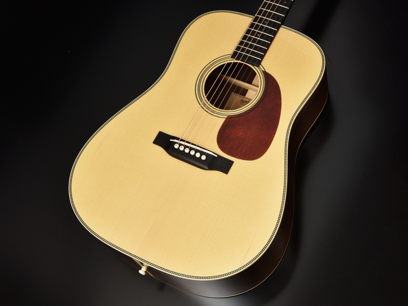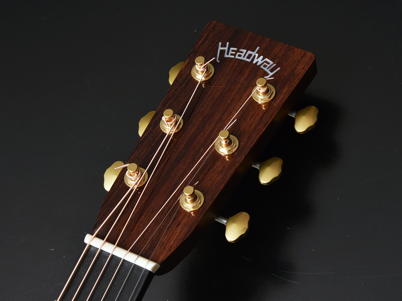 アドバンスドリアシフトはノーマルの位置から若干ブリッジ側に寄せたレイアウト。フォワードシフト、ノーマルの音の傾向を踏まえると、強度が上がり振動しづらくなることで、当初は「硬く扱いづらい音になるのではないか」という見方もありましたが、数本制作する中で得られた結果は音の芯、特に近年のヘッドウェイで少し弱かったプレーン弦(1,2弦)の鳴りに存在感が増した、という予想外の結果でした。1音1音しっかりと鳴り響き、芯のある迫力のサウンドを実現。また、位置をブリッジ側へ寄せることでトップ材に対しての丈夫さも増しています。