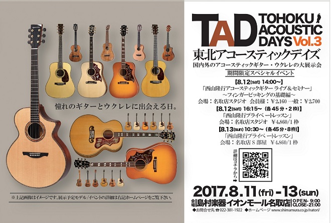 宮城県名取市にあります「島村楽器イオンモール名取店様」にて、お盆期間の8月11日から13日までアコースティックフェアが開催中です!