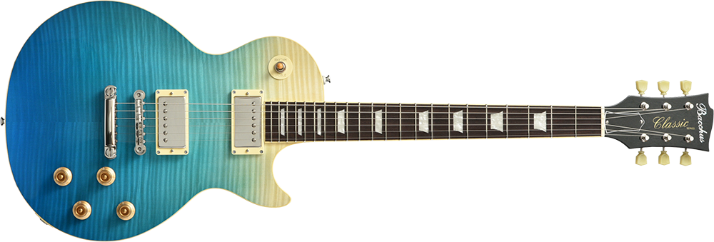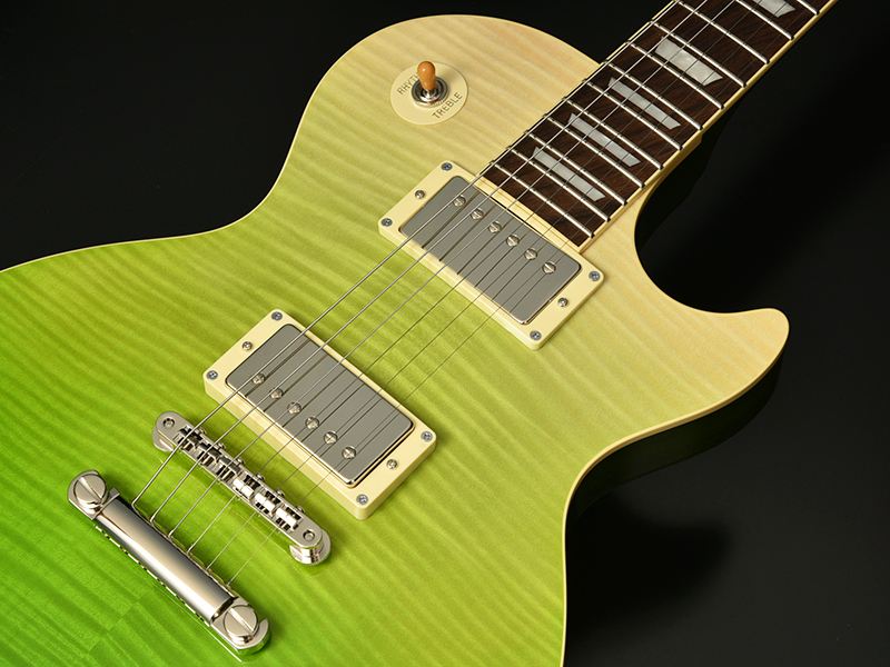 ボディトップにはフレイムメイプルを採用。そしてボディバック・ネックにはマホガニー、指板にはローズウッドを採用した王道スペックで、安心のサウンドをお楽しみ頂けます。