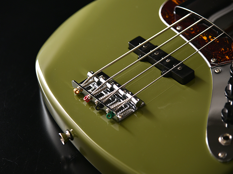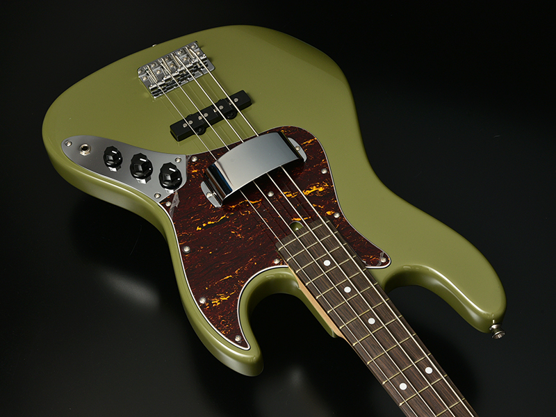 少しトーンを落としたモスグリーンっぽい渋めカラーが印象的で、べっ甲ピックガードとも非常に相性の良いモデルに仕上がっています。