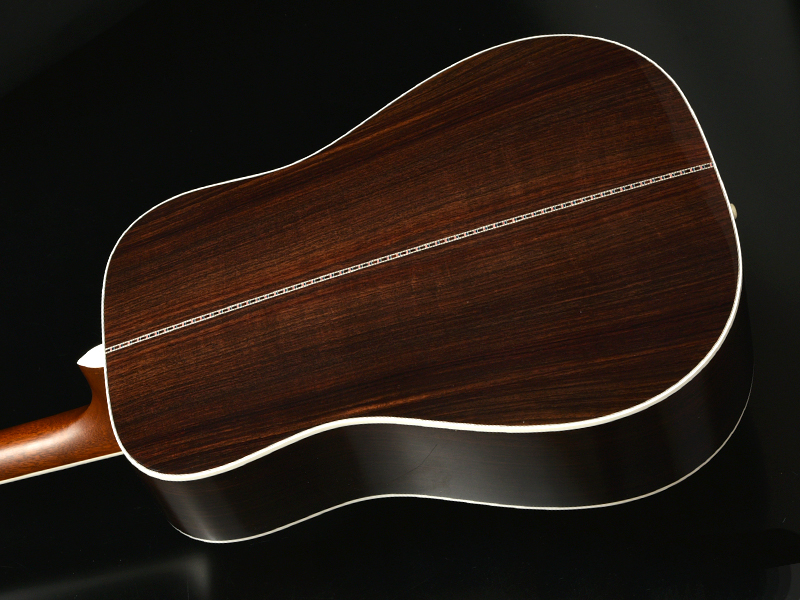 ボディトップには、熊が爪で引っ掻いた跡の様に見えるところからその名がついた「ベアクロー・シトカスプルース」を採用。希少性もあり、通常の均整のとれた木目のシトカスプルースに比べ木質が複雑になることから、音質面でも深みが増すと見る向きもあります。