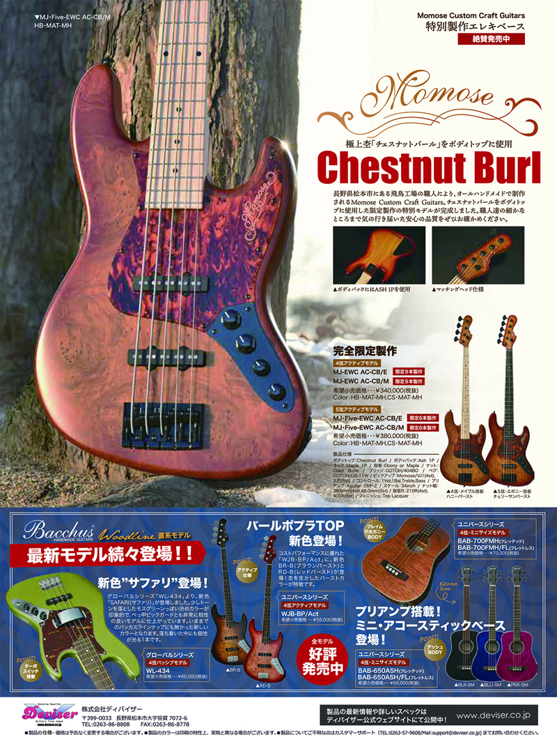 2018年2月19日発売のリットーミュージック刊ベースマガジン3月号にMomose Custom Craft Guitars製品が掲載されております。