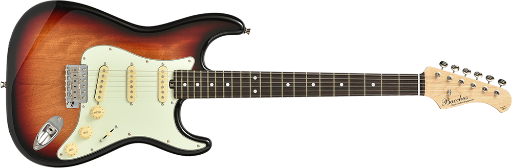 ヘッド形状にバッカスオリジナルシェイプを採用。ピックアップレイアウト等、オーソドックスな仕様になっているので扱いやすい1本になっています。