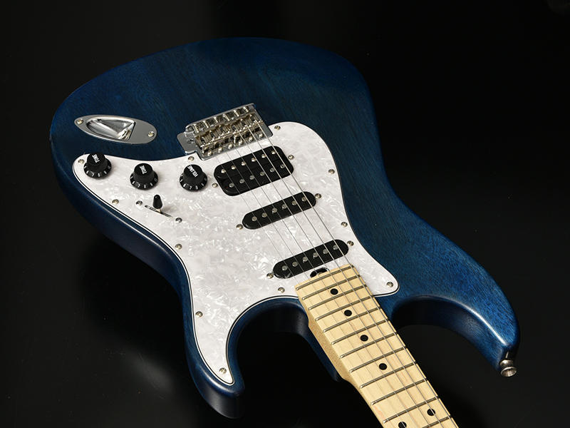 G-STUDIO PLDの最大の特徴はSSHピックアップレイアウトにあります。フロント・センターのシングルピックアップのクリーントーンとリアのハムバッキングピックアップのパワーあるサウンドで、ジャンルを問わず扱い易いモデルを目指したエレキギターです。リアPUのコイルタップ量を調節するブレンダー回路を搭載し、幅広い音作りが可能です。