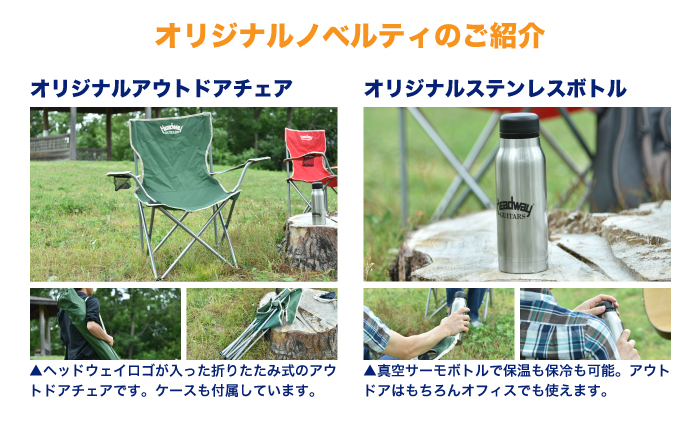 Headway Customshop・ATB Series・Standard Seriesをお買い上げの方には「オリジナルアウトドアチェア」、Japan Tune-up Seriesをお買い上げの方には「オリジナルステンレスボトル」をプレゼントいたします。付属のオーナー登録カードに必要事項をご記入の上、ディバイザーまでご返送くださいませ。