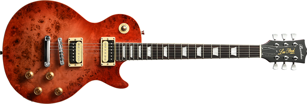 ボディトップに「バールポプラ」を採用した、上位機種にも引けを取らない華やかな外観に仕上がっています。ハムバッカーの分厚いサウンドが特徴的なモデルに仕上がりました。コストパフォーマンスに優れており、お気軽にお試しいただけるモデルです。