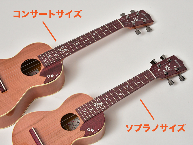 桜のモデルを使用して、ソプラノウクレレとコンサートウクレレの違いと特徴についてざっくりとご紹介いたします◎