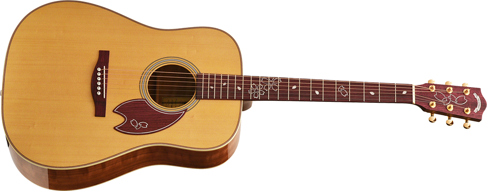 HD-SAKURA DX/STDは全15本の限定製作。華やかなインレイが目を惹く可愛らしい外観が特徴です。ボディサイドバックには桜材を採用。外観だけでなくサウンド面でも桜をお楽しみいただけます。