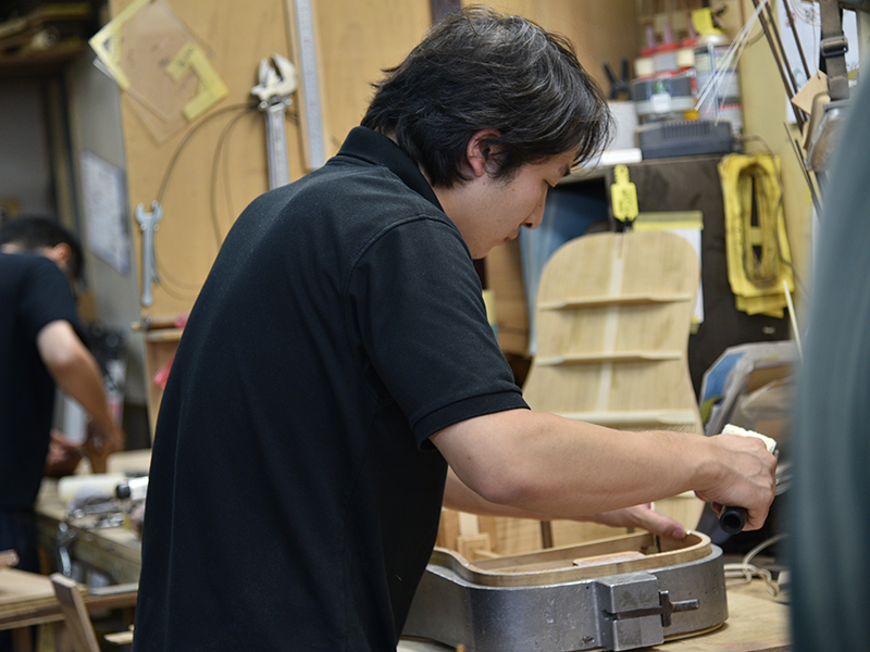 現在工場では楽器フェアに向けた限定モデル製作が進んでおります。イベント当日まであと2ヶ月弱ほどでしょうか。