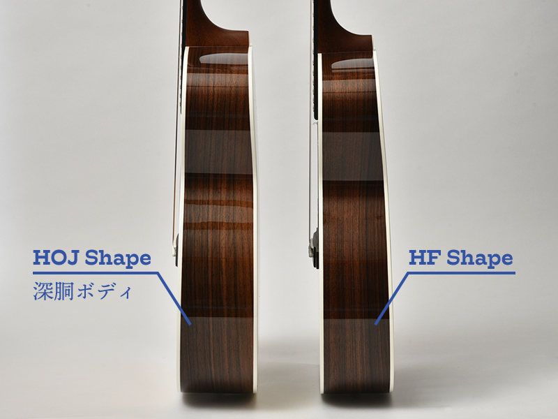 また、深胴ボディでより迫力のあるサウンドが出力可能となりました。(※写真はローズウッドサイドバックモデルです)