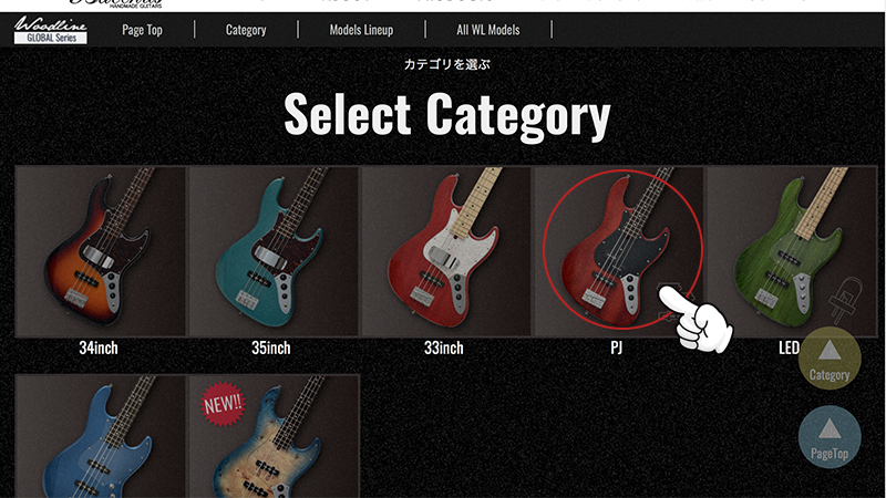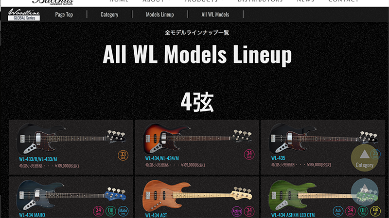 そして、上部メニューにある「All WL Models」は、4弦と5弦に分けて全WLモデルを一覧で表示しました。