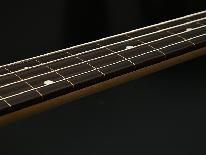通常フレットが打ち込まれるポジションにはメイプルラインのガイドがついておりますので、初めてフレットレスベースを手に取る方でも音程がとりやすくなっております。
