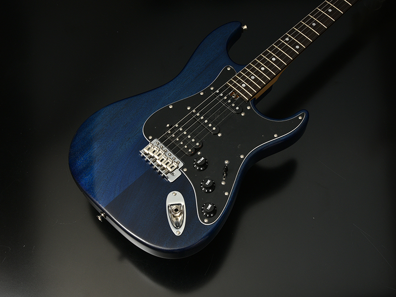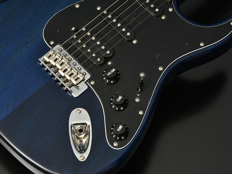 黒い指板と黒いビックガード、そして渋く、深い色味のブルーオイルフィニッシュ…。クールでかっこいい組み合わせで仕上げられております!