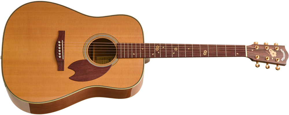 好評いただいている「桜」をボディに使用したアコースティックギター。2019年バージョンはヘッドから指板にかけてのインレイワークを一新しました。