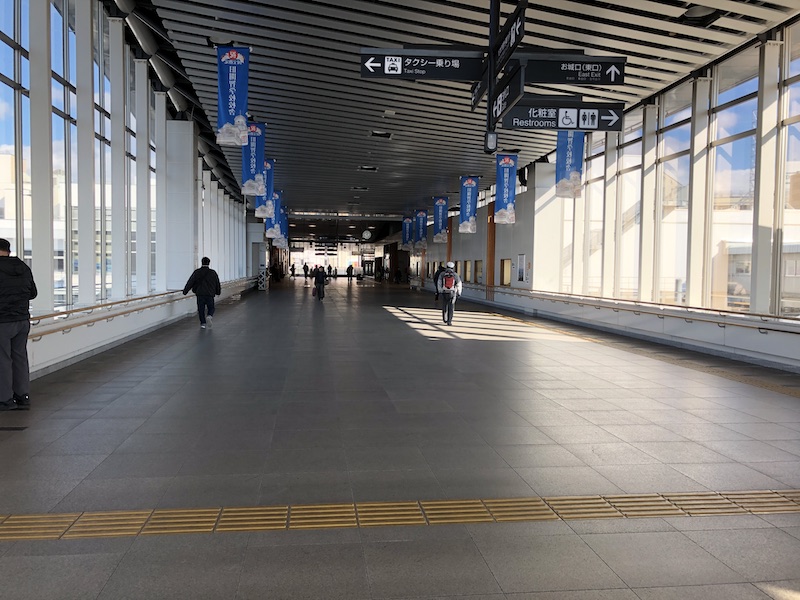 改札口を出てすぐの東西口をつなぐ自由通路には、一部展示スペースがあり、そこで赤松ギターを展示させて頂きました。