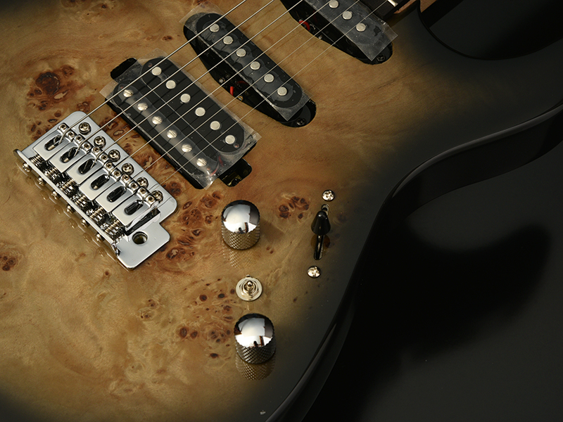 カラーは3色ラインナップしています。 ボディトップの杢目を活かすため、バーストカラーで仕上げました。