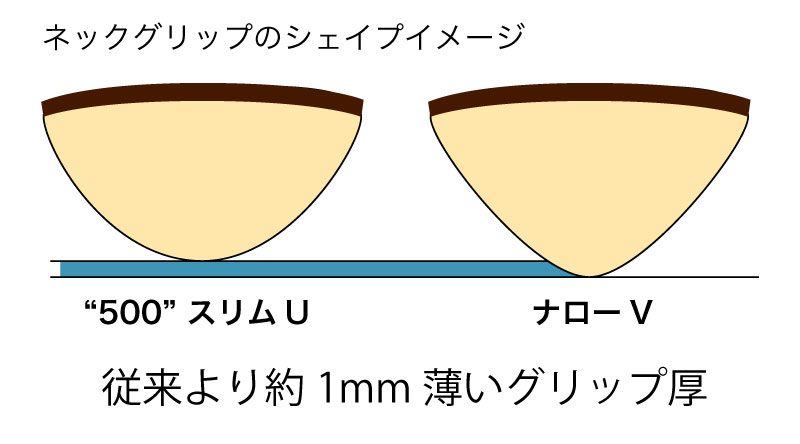 そこで500番は、多くのギタリストに違和感なく、弾きやすく感じられるオリジナルのスリムUシェイプに設計し直しました。