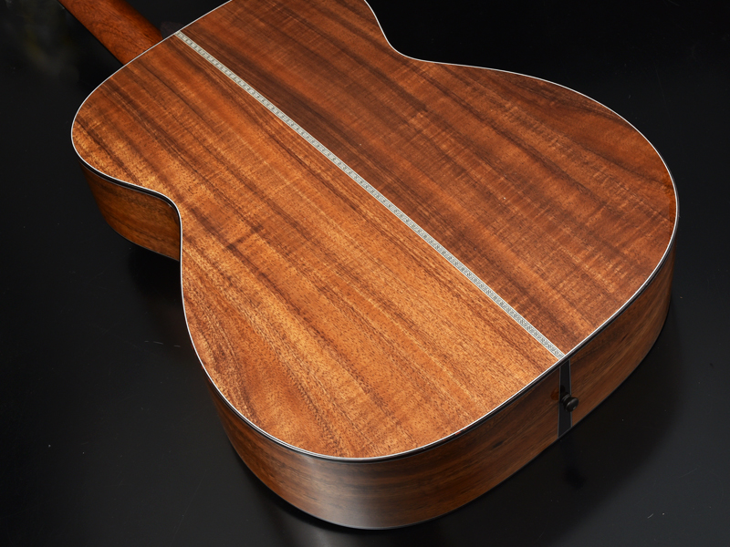 コアはウクレレに使用する木材としてもポピュラーであり、その性質は硬く、ギターにした時のサウンドも比較的明るくハリのあるサウンドが期待できます。そしてコア材の魅力はその木目にあります。無垢材のときはやや薄い黄色味がかった色合いですが、塗装することで深みのある褐色に変化します。