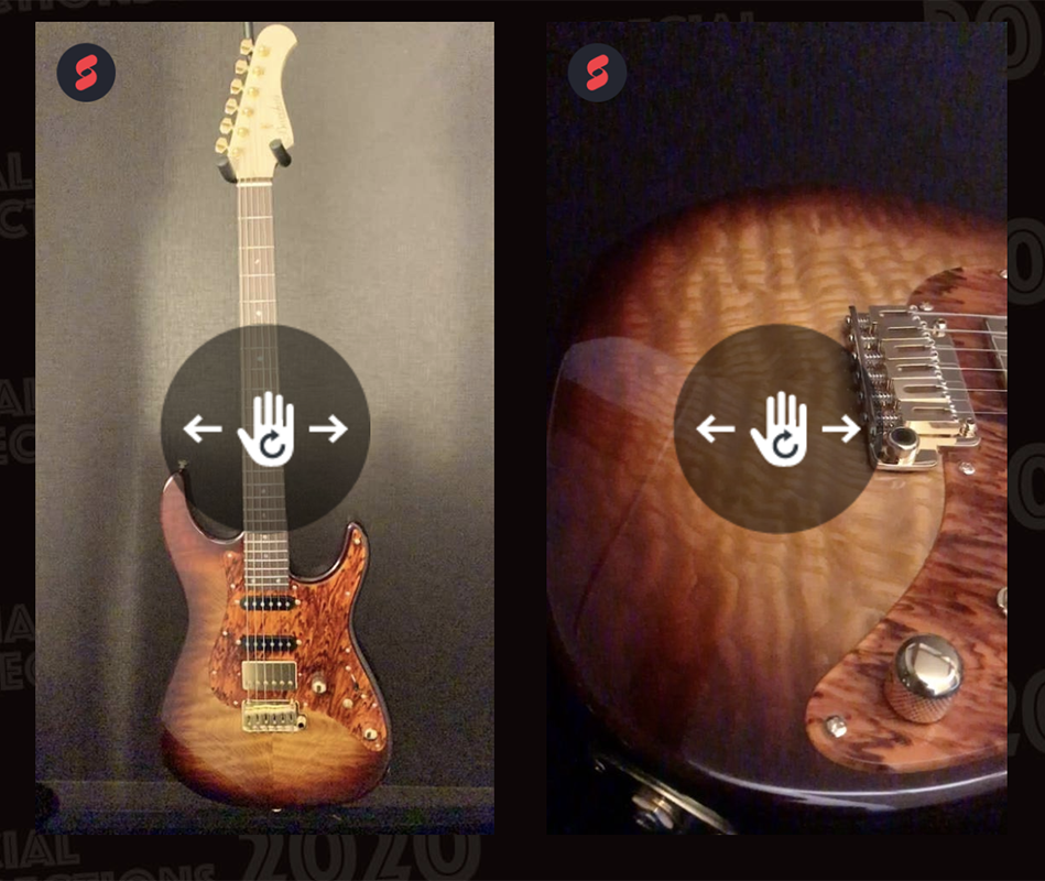 You can check the overall feel of the instrument by turning the picture 360° around. Also, for some models you can take a closer look from a different angle to closely have a different view at the wood grain and finish.