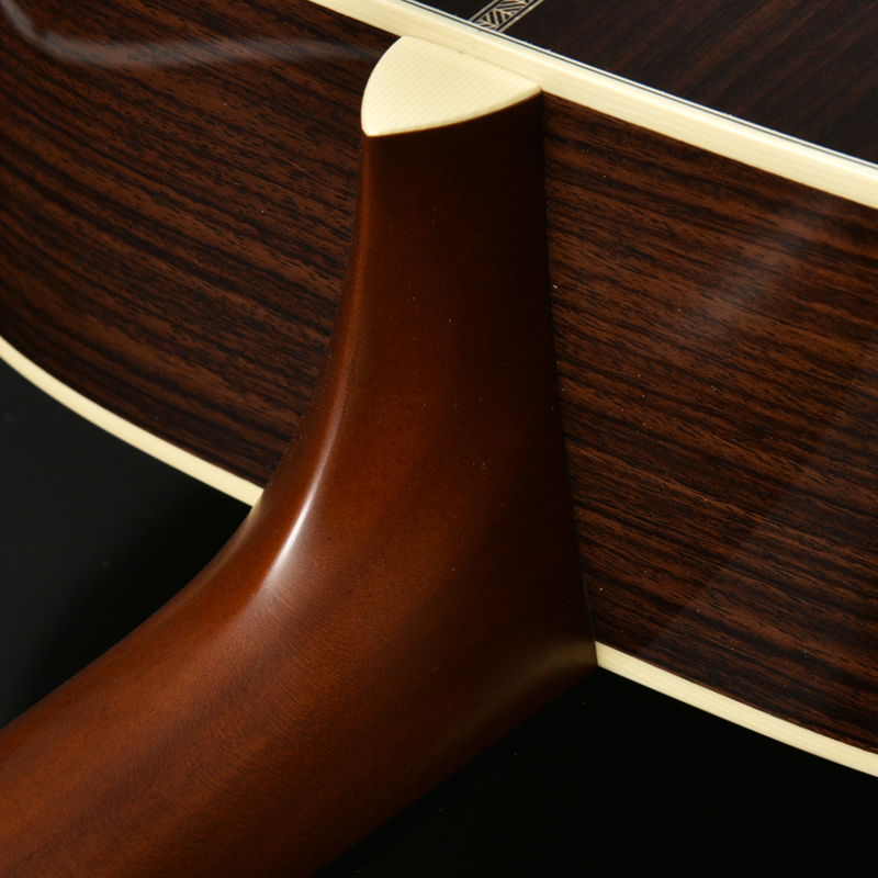 グリップが薄くなる分ネック本体の質量は減少しますが、ハイストレングスネック構造により、剛性は高まり、不要なネックのしなりを抑え弦の振動がスムーズにボディトップに伝わります。むしろ従来の500番シリーズアコースティックギターと比較してもギターの鳴りが向上している印象があります。