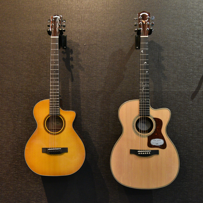 The total length including the end pins is about 930 mm, which is about 80 to 100 mm shorter than a full-size guitar. Regarding the body thickness, it is about 5mm thinner than the HF models, which are the smallest of the full-size guitars. The scale was reduced without hindering the guitar’s capacity and responsiveness.