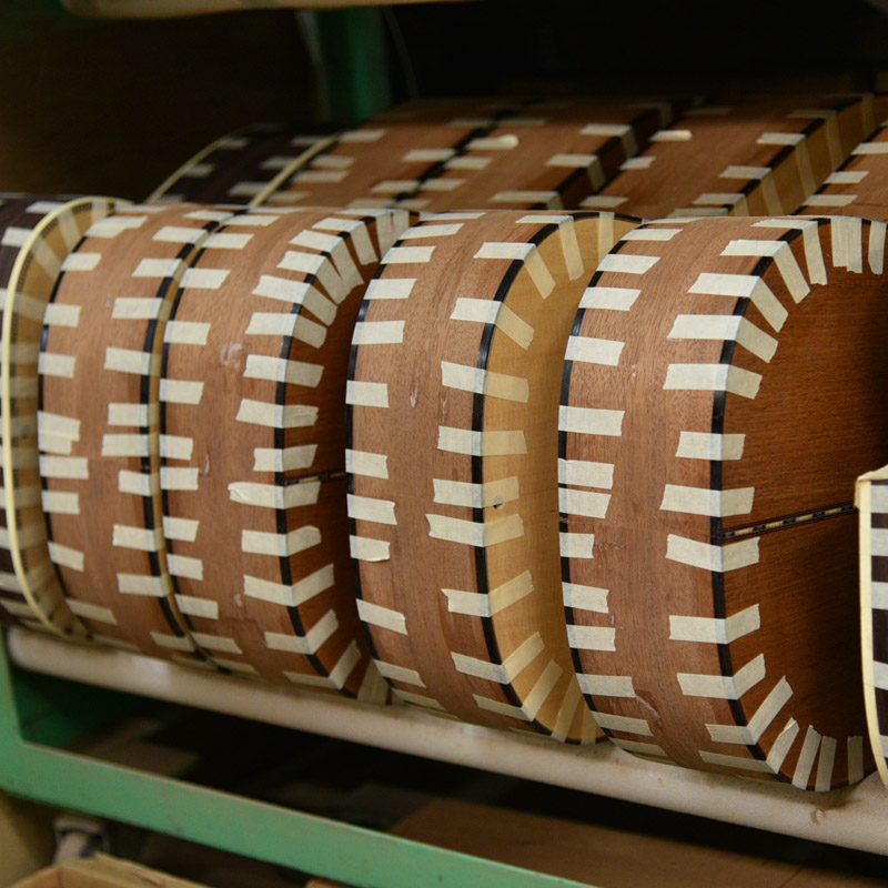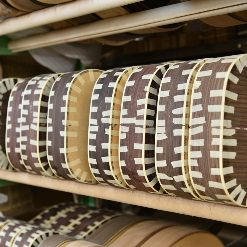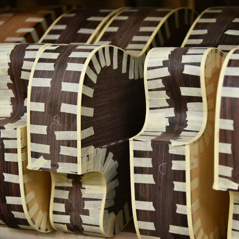 今回製作しているのは、ローズウッドサイドバックのHD、HF、HOM、HCシェイプ、マホガニーサイドバックのHJモデルです。