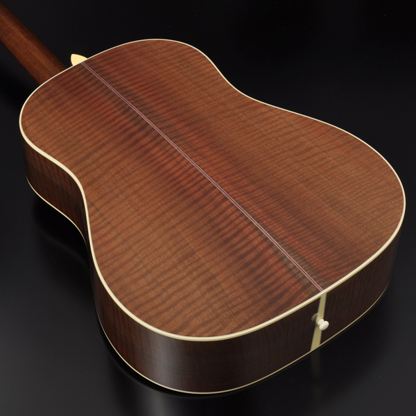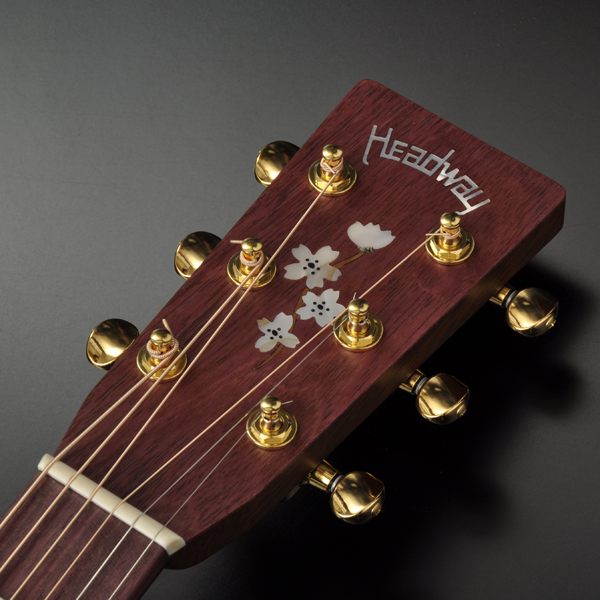 特別モデルにふさわしく、新たにデザインしたインレイがパープルハート材の指板とブリッジを彩ります。その上品なインレイにはピンクマザーオブパールという真珠のもととなる希少な貝を使用し、よりいっそう高級感を引き立てます。他の桜材に比べ適度な柔らかさと粘りを持ったこの桜はふくよかな音質と柔らかく響き渡るような鳴りに仕上がっています。