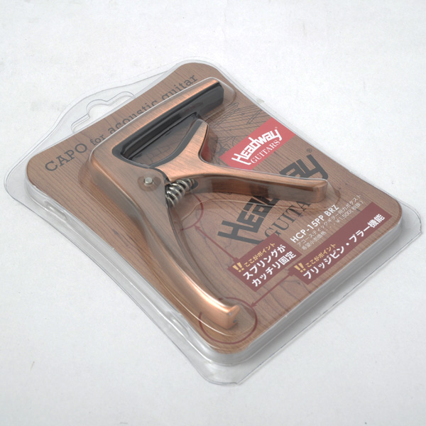 落ち着いたカラーのアコースティックギター用HEADWAYオリジナルカポタスト。 取っ手の先端部分にはくぼみがついており、ブリッジピンプラー(ピン抜き)としてもお使いいただけます。取り付けやすいトリガータイプのカポタストで、弦や指板を傷めないシリコンクッションを採用しました。クッションとバネのコンビネーションでネックに不要な負担をかけずに十分な力で弦を固定します。 ■HCP-15PP BRZ 希望小売価格:¥1,500(税抜) 製品ページ:http://archive.deviser.co.jp/headway/accessories/hcp-15pp-brz