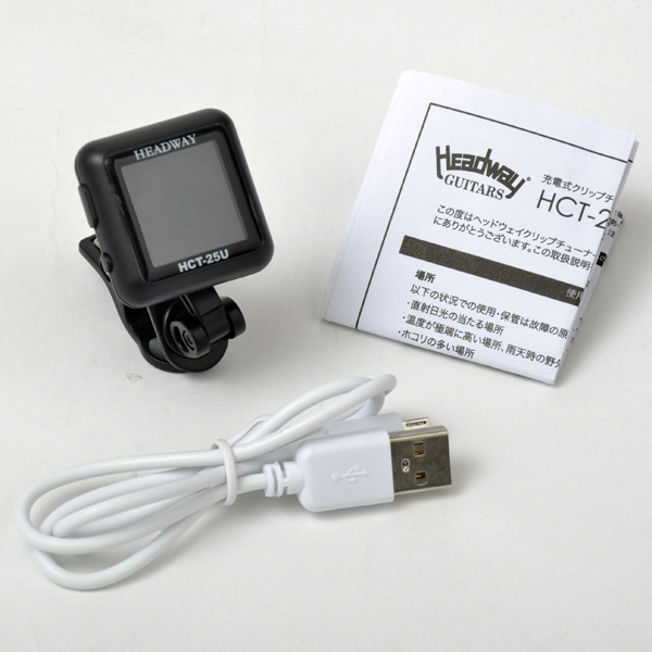 マイクロUSBケーブル(付属)から充電して使用するHEADWAYオリジナルクリップチューナー。ピエゾマイクを搭載したクリップオンチューナーで、クロマチックモードの他にギター、ベース、ウクレレ、バイオリン各モードを搭載しております。