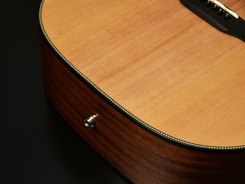 世界的に定評のある「Fishman」のプリアンプSonitoneを搭載。ナチュラルなサウンドをそのままアンプから出力することが可能です。コントロールはサウンドホール内側にボリュームとトーンがこっそりと。ボディサイドに仰々しくパネルがある訳ではありませんが、目立たず、むしろこちらの方が見た目に影響が少なく好感が持てるという方もいらっしゃるのではないでしょうか。