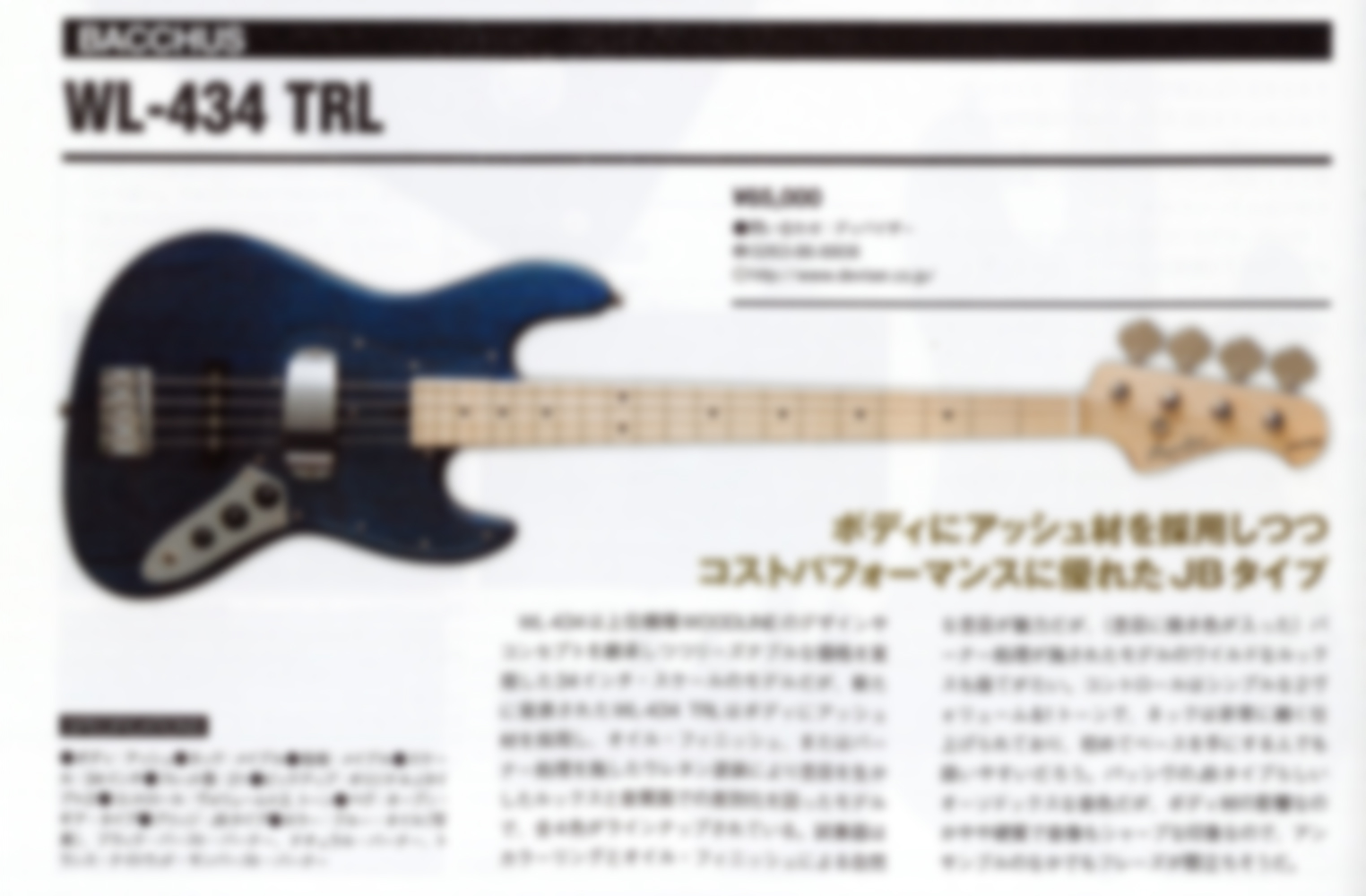 ベースマガジンの一番最後のページにあります広告では、「WL-434 TRL」をメインにその他グローバルシリーズのベースをご紹介しております。