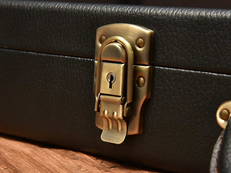 ブラックトーレックスの外装とヴィンテージ感のあるゴールドの装飾が特徴のハードケースで、高級感漂う外観に仕上りました。